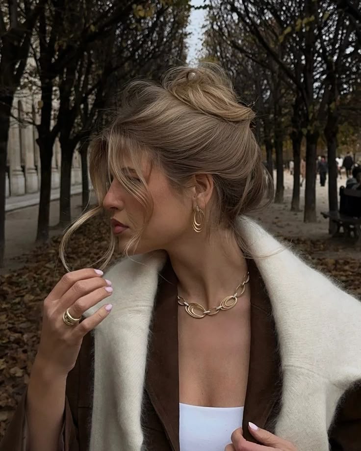 Coques baixos, tranças embutidas e rabos de cavalo bem alinhados são opções práticas e elegantes, que evitam o atrito com casacos e cachecóis. Já os penteados semi-presos com grampos ou torcidos trazem charme sem abrir mão do conforto.