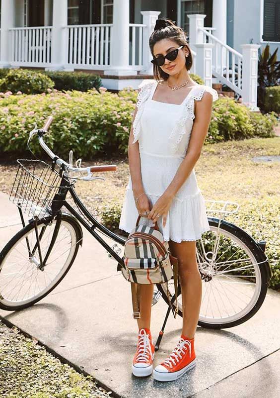 Quer quebrar a delicadeza de um vestido com algo mais urbano? Aposte no All Star! Seja com vestidos longos, midi ou curtos, o tênis deixa o look mais leve e confortável, sem perder o charme.